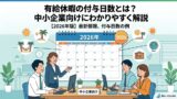 休暇の欄には、年次有給休暇について記載する必要があります。パート・アルバイトであっても、勤続6ヶ月以上かつ出勤率8割以上の条件を満たせば有給休暇が付与されます。付与日数の詳しい計算方法は、「有給休暇の付与日数とは?中小企業向けにわかりやすく解説【2026年版】」で解説していますので、あわせてご確認ください。